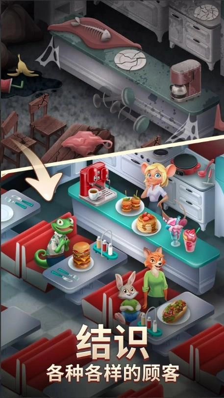 2.随着你收集更多的组件和玩家经验,你的厨房和电器会不断升级,并提供更多的烹饪和营养选择,给你的咖啡屋带来更多的客人。
