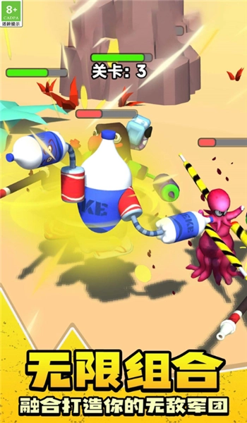 创意融合玩法,拖拽不同部位到融合炉创造新怪物。