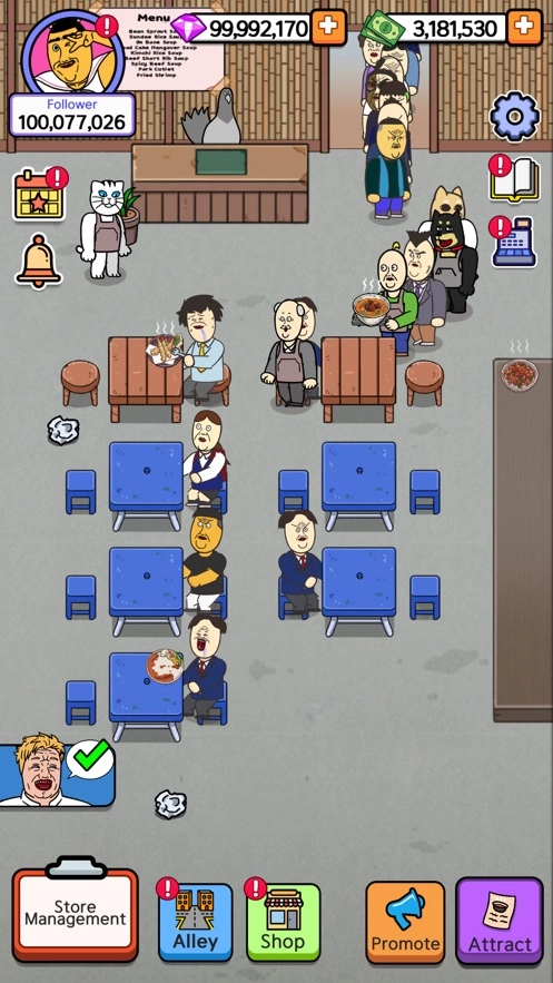 这款看似轻松的放置类玩法,却藏着无限的菜单开发空间和开设新分店的可能。来亲手掌控这条巷弄里的商圈吧!