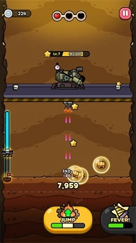 2、进入关卡后,挖掘机会自动向下移动,点击下方的“jump”按钮即可向上跳跃一段距离。