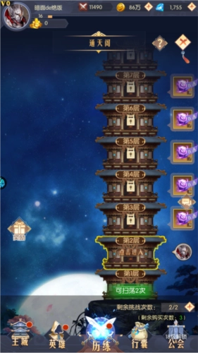 1、通天阁:爬塔类玩法,是真元石的主要获取途径之一,其掉落量相较于其他渠道更为丰厚。