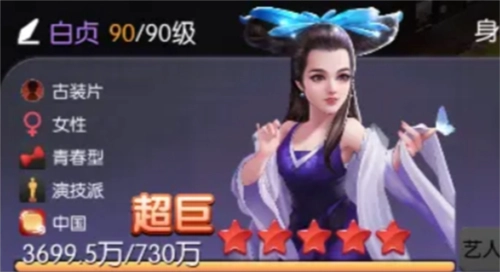 一技能限定舞蹈场景,在女配角出场后,可提升白贞与配角的各项属性,同时配角技能的触发概率也会提高。二技能限定爱情类电影,要求角色为中国籍艺人,触发后表演能力将得到提升。三技能限定古装剧,触发条件是对手戏艺人擅长拍摄古装剧本,此时电影质量会显著提升,艺人属性也会相应增加。