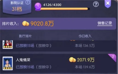 3、玩家可利用每日影院的盈利资金达成各档评价,进而获取能提升电影票房的粉丝。