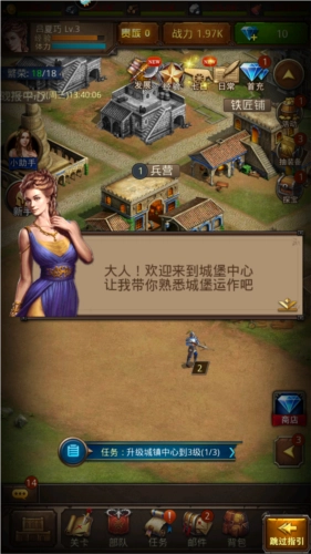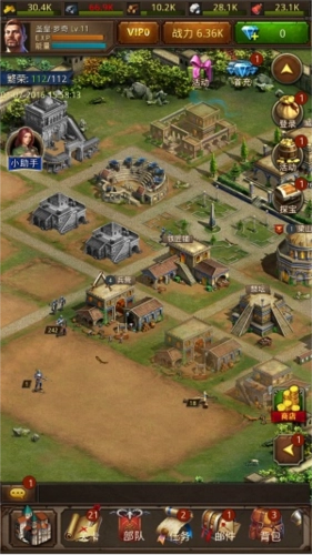 建设方面:前期资源和建设队伍都比较有限,城镇中心和兵营的建造升级不能中断,这是核心要点;另外,仓库消耗的资源不多,升级所需时间也短,是保护自身资源的有效屏障。