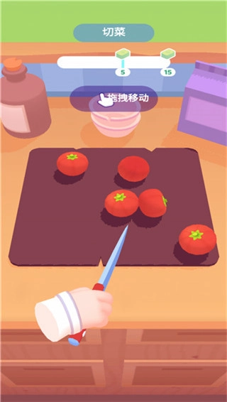 4、按住屏幕左右来回移动进行切菜。