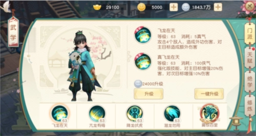 随着“道羽黄裳”资料片的上线,当主角等级与绝学总等级均满足特定条件时,就能解锁全新的绝学养成玩法“绝学传授”。四只小雕会拜主角为师,主角可将自身绝学传授给小雕,以此提升自身属性,显著增强战斗能力。此外,当四只小雕达到一定等级后,还能进行升段,让大侠获得更丰厚的属性加成。