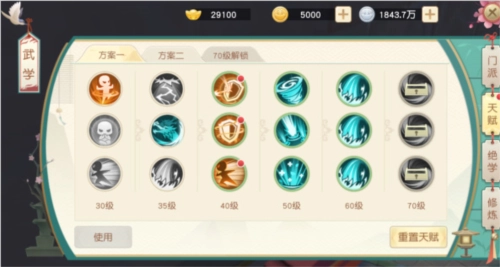 天赋提供3种可保存的方案,能够无条件自由切换,且天赋支持无限重置。