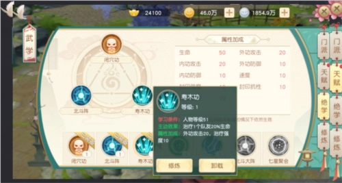 每个绝学都具备独特效果,共有三个装备位置可供配置绝学,战斗过程中能够运用绝学的主动效果。习得绝学后,可为主角提升属性,即便绝学未被装备,其属性加成依然生效。