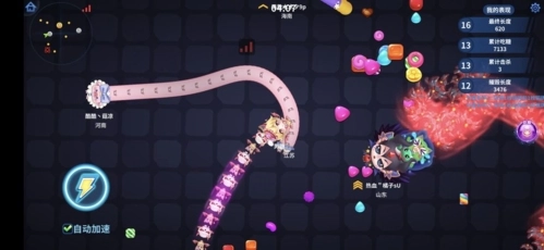 当你的长度达到足够标准时,就能在地图里凭借自身优势对弱小目标进行碾压式的攻击了。