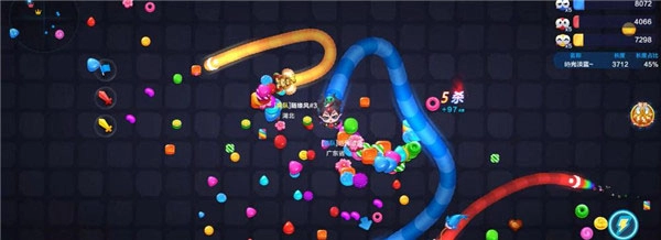 你可以把其他小蛇圈在自己的身体范围内,等它们自己撞上来,这样就能轻松拿到击杀和糖果啦!