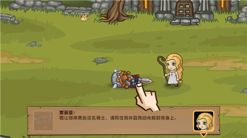 3、拖动光标,将它放置在战士身上,即可治疗战士;