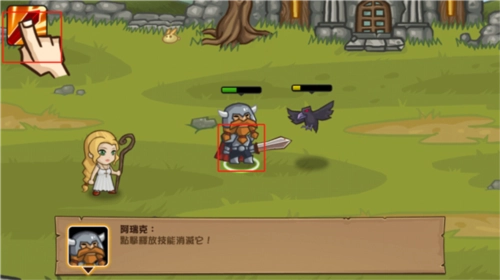 首先把英雄技能升级,点出第二个主动技能,这个技能在关卡里特别好用。牧师会自动释放技能,不用太操心;法师有火系和冰系两个技能,火系技能适合清理大量小怪,群体伤害很可观,冰系技能则用来对付BOSS,能起到减速的作用。