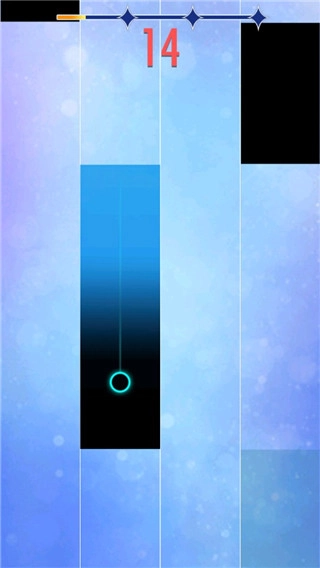操作依旧采用全屏触控模式,玩家只需用手指点击屏幕上的黑键就能完成音符匹配,若要顺利通过整首歌曲的挑战,就必须精准点击每一个黑键,不能有任何遗漏。尽管操作方式没有变化,但操作过程却有了显著不同——这次的按键会呈现出“拖尾”效果,需要玩家长按才能完成操作,这在提升游戏难度的同时,也让整体玩法更具趣味性。