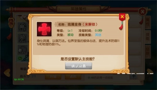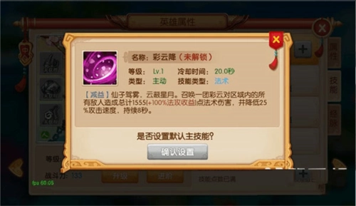 2、除被动技能外,每个英雄上阵时仅能使用一个专属技能,只需把该技能设为默认主技能就行。