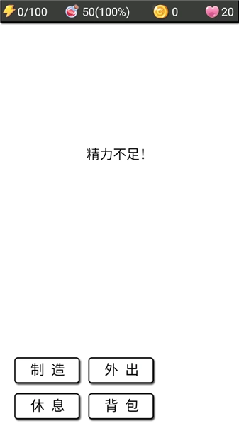 4、当精力耗尽时,你可以点击“回家休整”。在制造界面中,你可以消耗相应的材料来制作装备或道具。