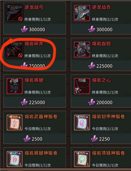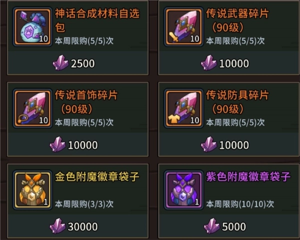 ③——暗月塔,在这里可以购买到能提供大量资源的额外物品。200多枚橙色徽章建议优先兑换利刃2号攻速徽章和暴击4号暴击徽章,要知道一个极品徽章的价值相当于一本极书;剩下的600多个宝石袋子,优先用来打造3个7级暴击宝石,其余的则用来制作爆伤宝石。