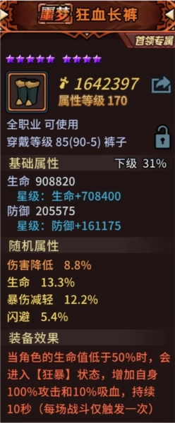 用这些继续推进关卡,最终目标是狂血裤子。有了这条裤子,装备搭配就能更自由灵活。要是材料充足,可直接在工坊制作;前期团本里用不上的粉装,也能分解成材料来加快制作进度;另外,刷噩梦难度的先祖礼堂副本,击败boss也有概率掉落这条裤子。