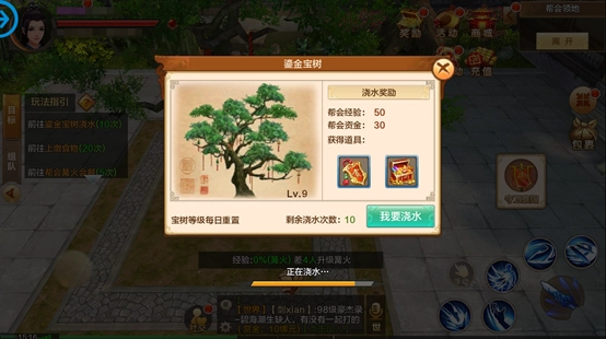 1、每天可在领地内对鎏金宝树进行一定次数的浇水。