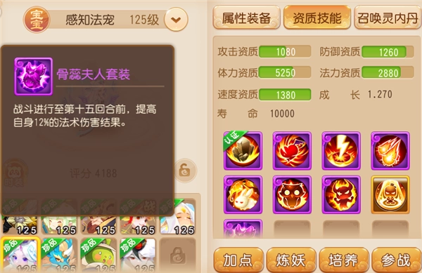 首发攻宠里有红鲤,那首发法宠自然也不能少了骨蕊夫人。和红鲤一样能在前15回合提升法伤的它,天生就是首发法宠的强力候选者。