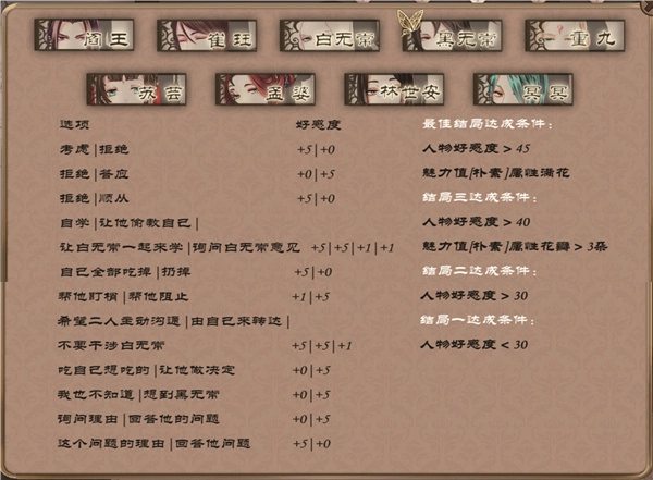 在游戏里会碰到出门前挑选衣服的状况~~通过阅读剧情或者达成特殊成就能够解锁服饰,不同的服装搭配以及多样的属性组合,不仅会对各个角色的好感度产生影响,还会左右结局的发展方向呢。