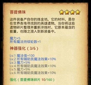 击败雕像后可得到菩提佛珠,迷宫结算完毕返回炼金坊还能获取神器——菩提佛珠。该属性同样属于魔法冈布奥的神器。