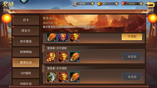 1、登录礼包,每日登录领取超值大礼。