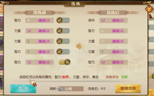 洗练装备带来的额外属性能够提升玩家的战斗力,而且这是一种性价比比较高的方式。洗练石可以通过完成日常任务积累活跃度来轻松获取,小资玩家还能通过月卡和战力礼包得到洗练石。洗练石用于装备洗练,每件装备最多能洗练出5条属性,系统会根据不同职业推荐对应的属性,洗练出推荐属性后,点击右侧的小锁就能锁定该属性。洗练出的属性品质分为普通、良好、优秀、完美和无双几个等级。