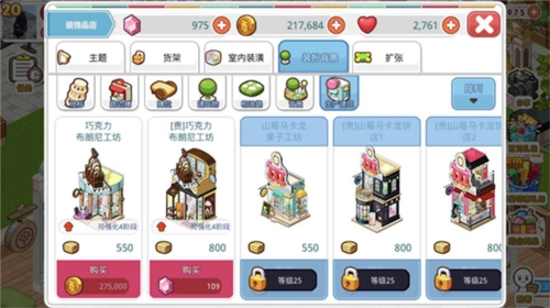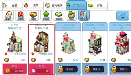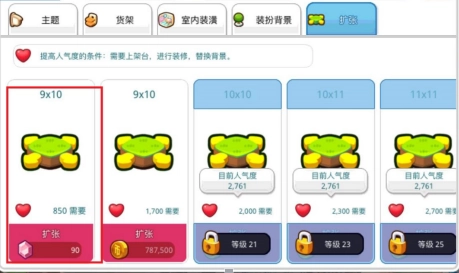 1、购置装饰品:前期提升营业额的关键在于扩大店铺规模,因此需要购买装饰品来布置店铺(无需使用红宝石,金币购买的装饰已足够,经济实力较强的玩家可自行决定)。建议初期不要为了节省金币而选择人气值低的装饰品,因为后期会发现这些低价家具无法满足需求,更换反而更浪费金币,所以前期可根据实际情况选购人气值约40的装饰品。