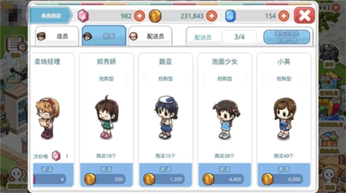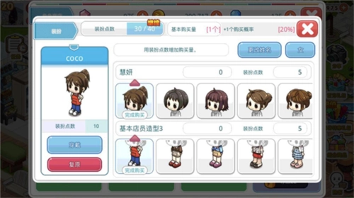 2、店员换装:前期可以跟随任务进度购买衣服使用,等后期金币充裕后再更换也没问题。