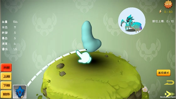 游戏开始后,玩家所操控的物种只有腿和身体,必须先进入编辑界面,为它添加上眼睛、触角和装饰,才能出门行动。