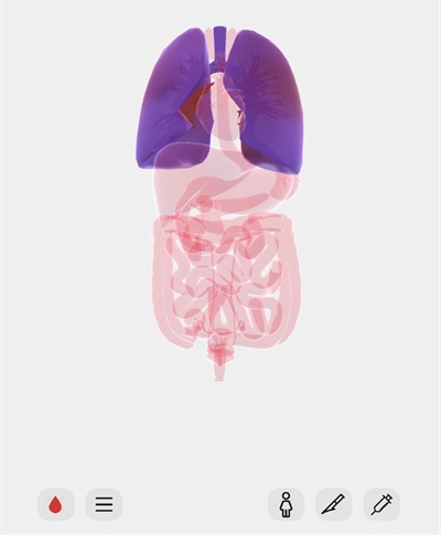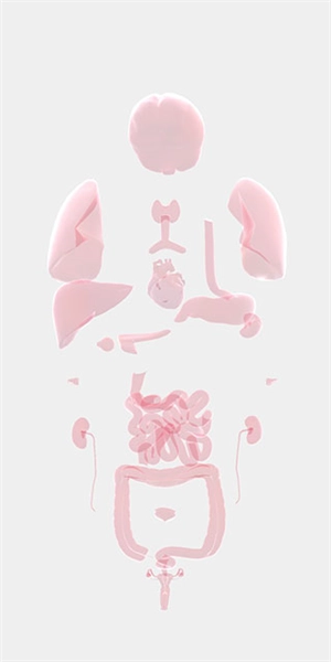 4、用手指在屏幕两侧拖动,人体器官会分开显示,方便查找对应器官;点击屏幕中央,器官则会重新聚拢。