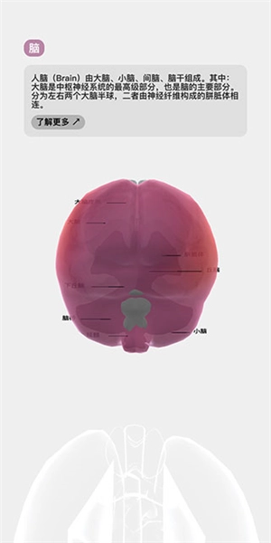 7、再次点击该器官,会呈现其具体说明信息,同时在模型里标注出器官的构成;点击下方的“了解更多”按钮,也会触发浏览器跳转。