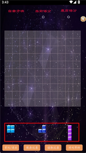 1、打开应用后,点击“自由方块”入口,就能进入拼图消除的操作界面开始挑战。