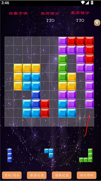3、当某一行或某一列被方块完全填满时,该区域会自动消除,从而释放出空间以便继续放置更多方块。