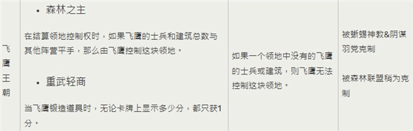 2、飞鹰王朝:当场上存在三个或更多属于他的鹰巢时,飞鹰每回合将获得2+VP。他们会逐步积累分数,要是放任飞鹰独自发展,飞鹰就会取得胜利。