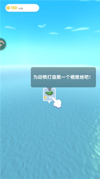 1、在本站打开小小绿洲,进入后首先会看到一片空旷的海域,我们需要按照教程为动物搭建第一个栖息地。