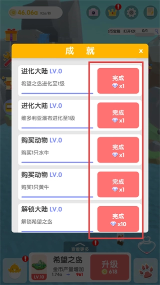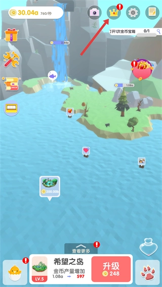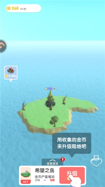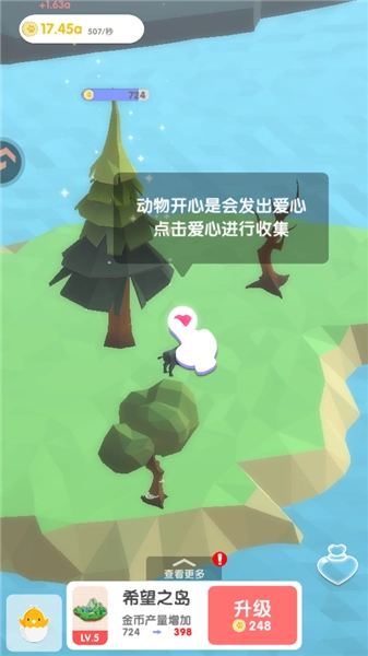 5、当收集到足够的爱心后,就能对陆地进行升级,这样不仅能提升金币的产量,还能让陆地的规模得到扩大。