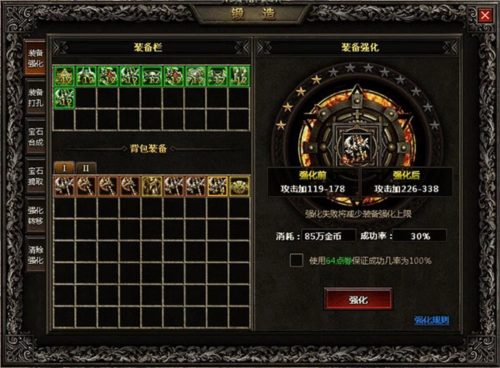 每种宝石都可划分为10个等级,玩家可以借助“锻造”界面里的“宝石合成”功能,把同类型的低级宝石合成为高级宝石。