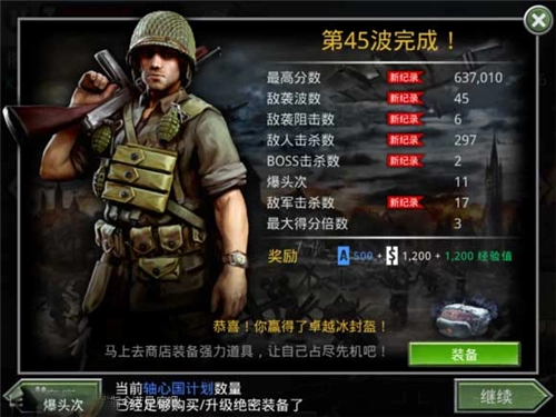 二、以卡宾枪作为主力武器,搭配少量手雷,主打基地战!一路打到第20关。之后在20关里主动送死,每挂一次能获得1000战争币,大概半个多小时就能攒够钱买超级士兵了。