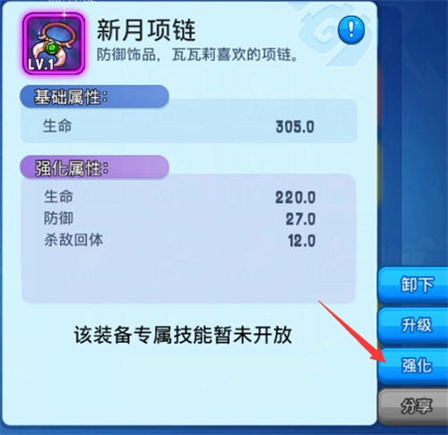 想不想让装备属性变得更出色?目前版本只能靠装备合成和装备升级券来提升。等新版本把基础属性和强化属性分开后,点击右边的装备强化系统,就能对强化属性进行提升啦。只要强化属性上去了,就算是绿色装备也不会比蓝色装备差太多,而且强化到特定等级还能解锁装备的专属技能呢~
