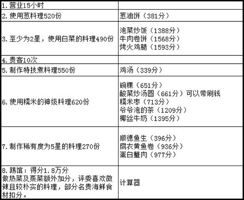 (5)75号任务里的15玉璧小费,需要在每天做完菜后从桌子上搜取,每次刷新间隔为23小时,且搜取操作必须在完成一次做菜之后进行。
