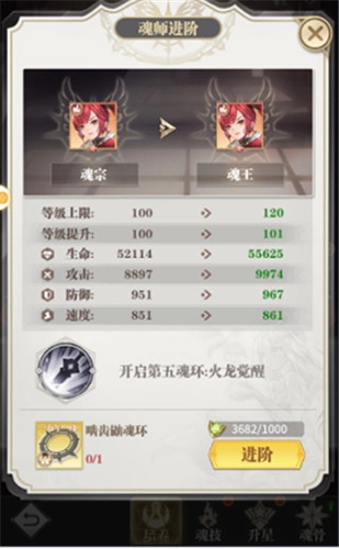 2、每次升星都能提升魂师的级别,同时还会增加魂师攻击成长与生命成长的提升幅度