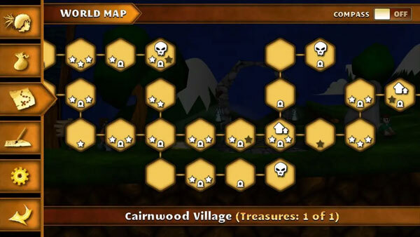 3、这是地图面板,骷髅标志代表boss战,房屋标志代表有村庄,也就是旅馆、商店,拱门标志代表有传送门。星号代表当前地图的宝箱收集进度。