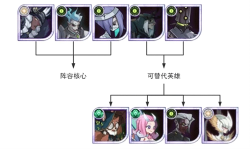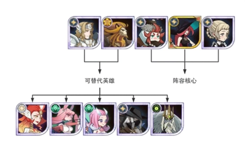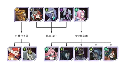 中期我们采用商魅呆阵容,成员包括商人、狮子、呆萌、魅魔(紫品质魅魔就能上场,最好能追至红色品质并达到30专属)以及蝴蝶。其中狮子和蝴蝶可以根据实际情况替换为兔弓、骨弓、凤凰、奈拉、三眼、皮帕等英雄。