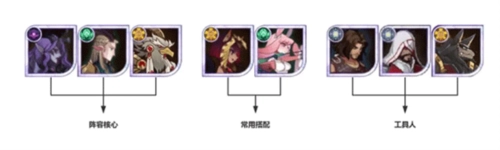火女光三宝阵容的核心成员包括灰烬魔女-米瑞尔(火女)、旅行商人-罗万(商人)、赋灵女仆-罗莎琳(女仆)、耀光之盾-卢修斯(光盾),再搭配一名工具人。火女是队伍的主要输出点,通过与女仆的配合能释放两次大招,从而打出高额伤害。工具人的选择较为灵活,小鹿、蝴蝶、凤凰、棺材、骨王等英雄都可以作为备选。