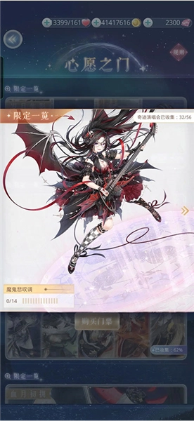打开心愿之门后,会看到一个和成就-故事套装里类似的套装栏,每个方框对应着活动套装,其左上角标注着活动套装的名称。