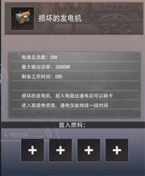 10、发电机:需接通辐射芯片房的电源,且要放置电阻丝才能启动;启动后会消耗电阻丝来获取电能,也可用于家庭通电照明。