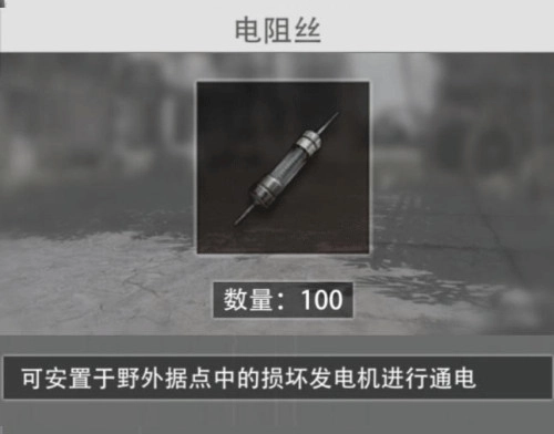 9、电阻丝:刷新地点包括物资箱、补给箱、工具箱、军火箱等,这些箱子中均会刷新该物品。