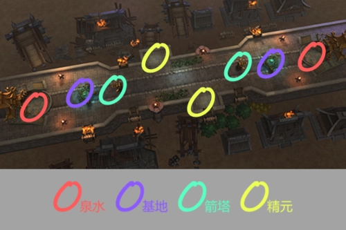 大乱斗地图上设有两个精元点,分别位于兵线中间的两侧区域。战斗过程中,这里会随机刷新出四种不同类型的精元: