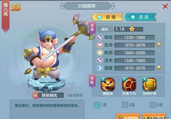 第二天登录就能拿到第二个猪八戒,第一天我打算用别的角色,比如判官就挺合适的。要不是第二天送猪八戒,说不定我就一直用判官了。猪八戒是前排肉盾,他的技能能给友方前排加护盾,还能提升友方前排70%的控制效果,另外还有嘲讽技能,有机会吸引敌人攻击自己,真是个厉害的肉盾!